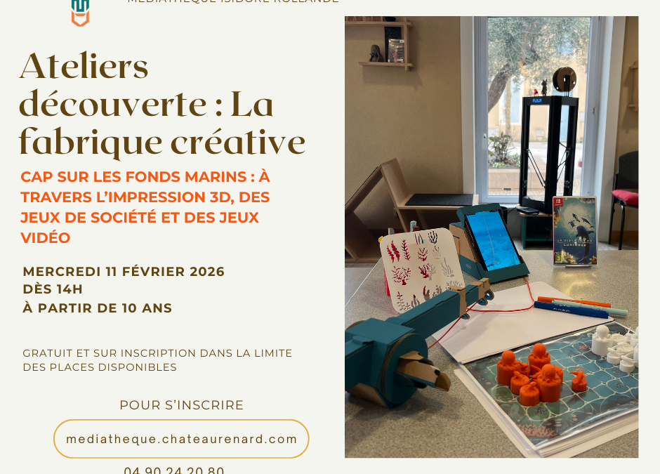 Cap sur les fonds marins ! Un temps partagé entre la découverte de jeux vidéo immersifs d’exploration des fonds marins, de jeux d’adresse et de logique et la création de pièces de jeux de société avec une imprimante 3D.