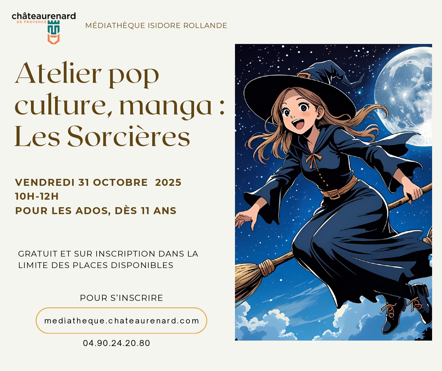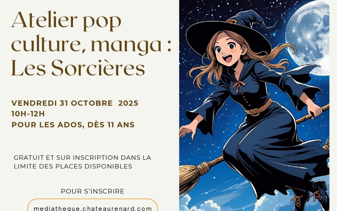 Préparez-vous pour Halloween avec la médiathèque Isidore Rollande ! Un atelier spécial pop culture et manga est organisé sur le thème des sorcières.