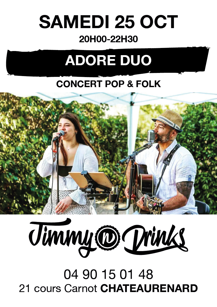 Venez assister au concert de « Adore Duo » chez Jimmy n Drinks tout en buvant un verre, dégustant un plat…