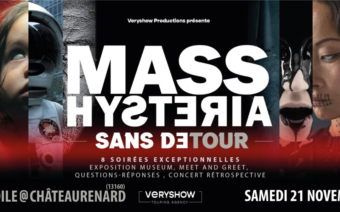 Sans filtre, sans carapace, sans esbroufe, sans détour, voilà comment les MASS HYSTERIA veulent se présenter à leur public lors de ces quelques soirées au concept inédit. Après une tournée Tenace de 120 dates au succès retentissant, les ayant vus fouler les plus grandes scènes avec une scénographie impressionnante, c’est vers une série de soirées intimistes que se dirige l’envie du groupe : celle d’être au plus près de ses fidèles furieuses et furieux, armée des ombres qui ne cesse de s’étendre. 30 ans de carrière exceptionnelle et autant de milliers de souvenirs qu’évoquera le groupe au travers d’une soirée qui proposera, en guise de première partie, 45 minutes de questions-réponses avec les Mass, pour tout raconter, tout se dire, suivies d’un concert rétrospectif qui balaiera toute la discographie emblématique d’un des plus grands groupes du metal français. Une exposition museum orchestrée par Corentin Charbonnier (exposition metal de la Philharmonie), ainsi qu’un meet and greet post-concert compléteront l’immersion de ces 8 soirées exceptionnelles et uniques.