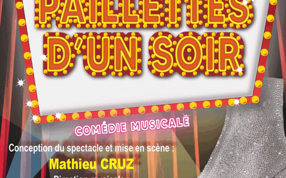 Cette troupe nous fait l’honneur de présenter, bénévolement, son dernier spectacle « Paillettes d’un soir ». Mise en scène : Mathieu Cruz. Direction musicale : Angélique Boudjemil.